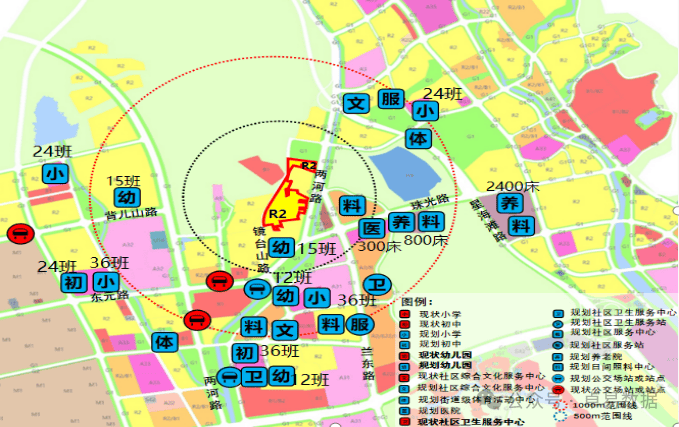 2、教育与医疗:规划周边有3处幼儿园,3处小学,1处初中,1处医院,1处养老院。