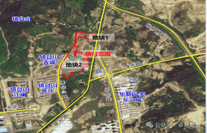 2宗地相邻,1号地块位于黄岛区镜台山路东、两河路西,占地11545㎡,建面17317.5㎡,容积率1.5,建筑密度≤25%,绿地率≥30%,拍卖起始楼面地价3962元/㎡,起始总价0.69亿,竞买保证金0.14亿,保证金缴纳比例为20%。