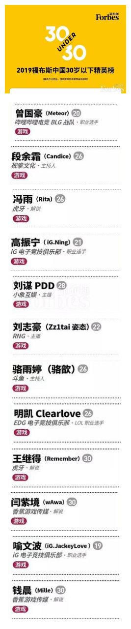 9.电竞人员入选福布斯精英榜:Ning、pdd、Clearlove等人上榜